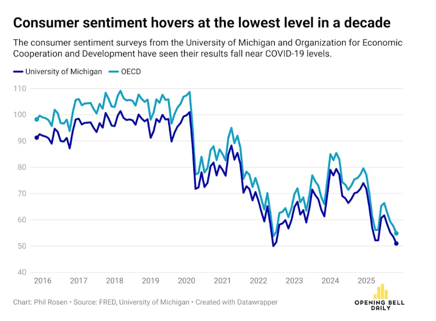 Consumer sentiment stayed depressed — and this is where the K-shaped economy shows its face